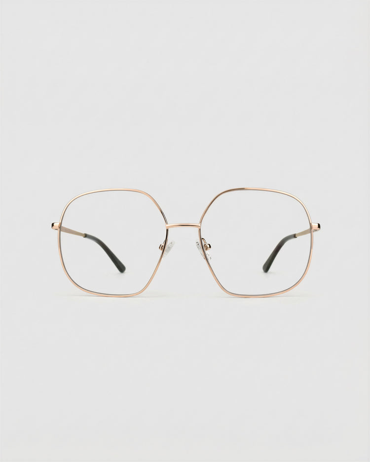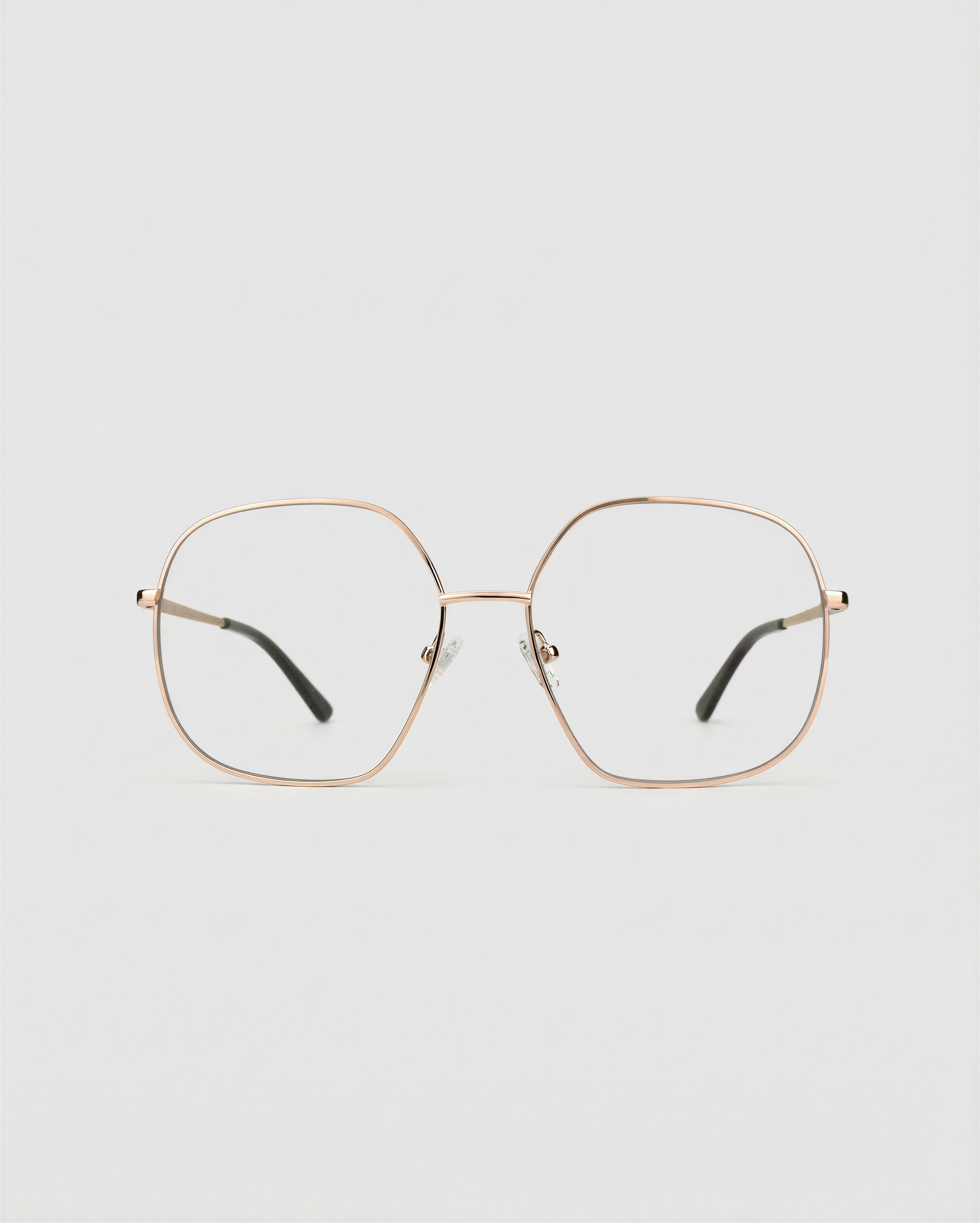 These reading glasses feature a refined gold frame paired with soft blush-toned accents, creating a sophisticated accessory that complements any style. The lightweight design ensures comfortable wear throughout the day, while the quality lenses provide clear vision for reading and detailed work.