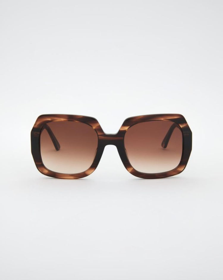 Mindy Brown solbrillerne har en dristig, firkantet silhuet i en rig skildpaddebrun farve, fremstillet af blankt acetat for et slående, moderne geometrisk look. Designet med tykke stænger og overdimensionerede linser, tilbyder de rigelig dækning og et selvsikkert stilstatement. Disse solbriller er omhyggeligt fremstillet af førsteklasses materialer og kombinerer tidløs skildpaddeskals-elegance med moderne design, perfekt til kvinder, der søger sofistikerede, men edgy briller.