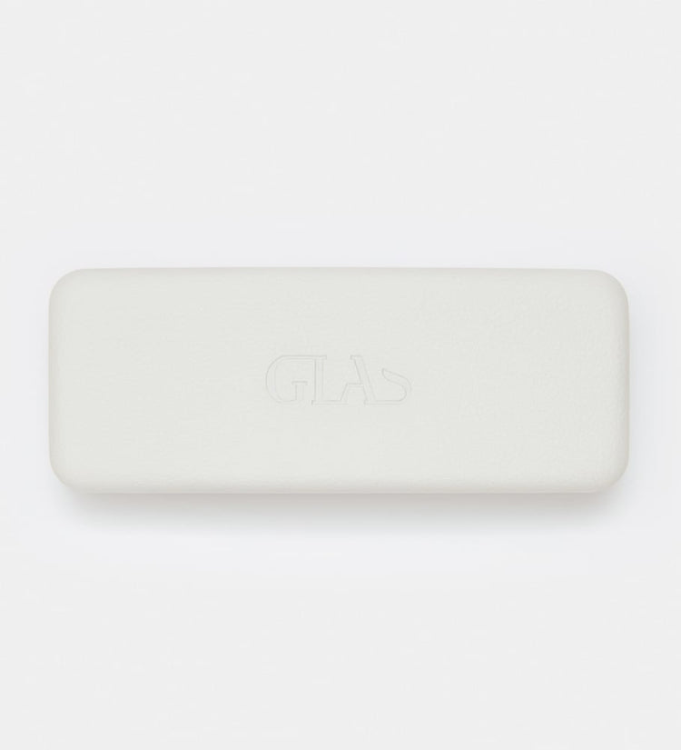 Dette hvide, hårde etui i vegansk læder tilbyder raffineret beskyttelse til dine briller. Dets glatte, robuste ydre beskytter dine linser mod støv og ridser, mens det bløde filt-interiør sikrer skånsom pleje. Perfekt til at bevare dine brillers perfekte stand, når de ikke er i brug.